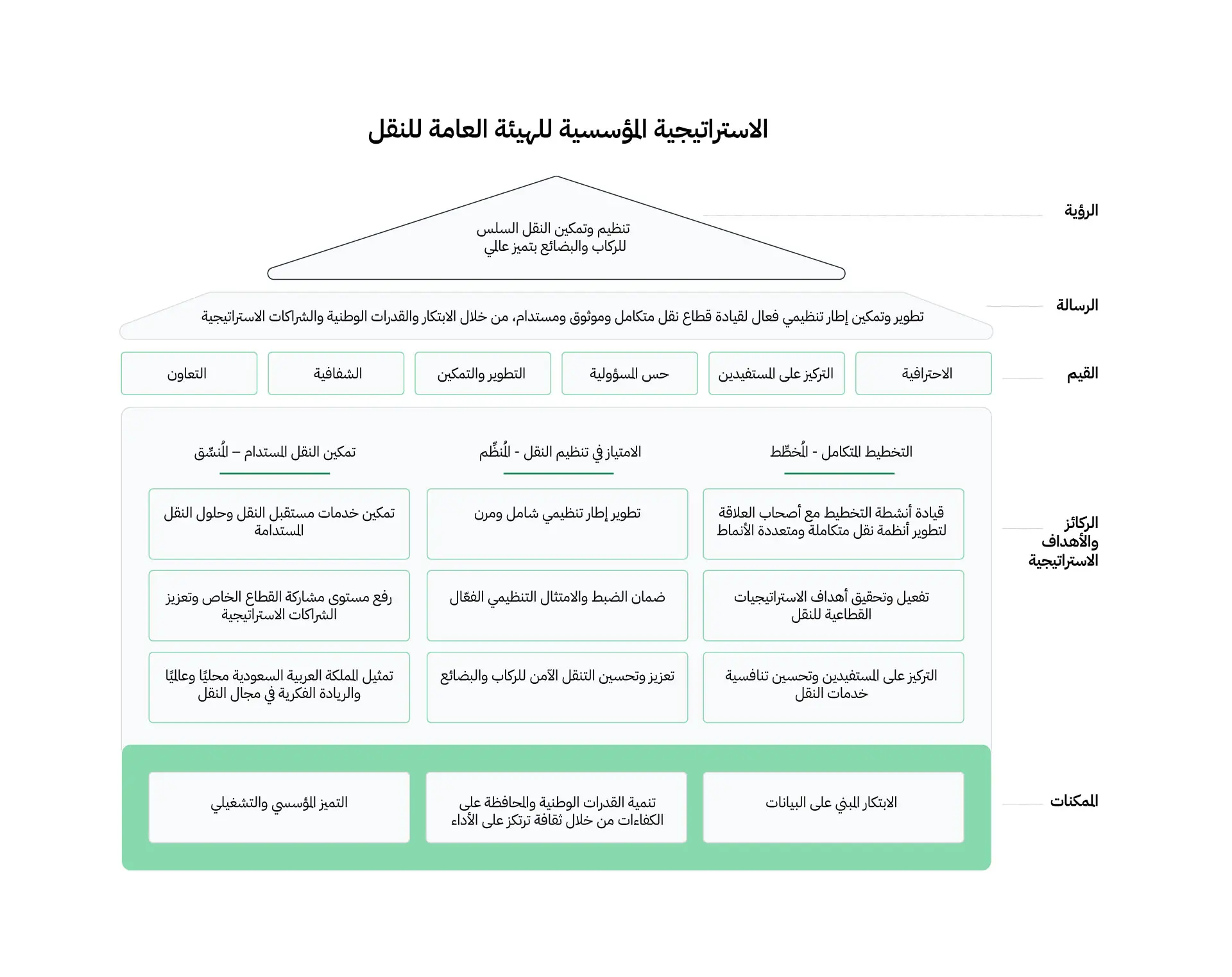 تطوير برامج استراتيجية متكاملة ورؤية واضحة للقطاعات الرئيسية للنقل، تشمل برنامج القطاع السككي وبرنامج القطاع البحري وبرنامج القطاع البري.